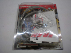 Ducati Performance bromsslangar till Ducati Monster 600 , 750 enkel bromsskiva. Du måste själv kontrollera att den passar till din årsmodell. Om du är osäker, kontakta oss gärna och fråga. Fren Tubo rostfria plast klädda slangar, banjobultar och packningar kommer med. Tidigare reservdels nummer: 16105. (Dom kanske kan passa andra modeller men det får du ta reda på) .