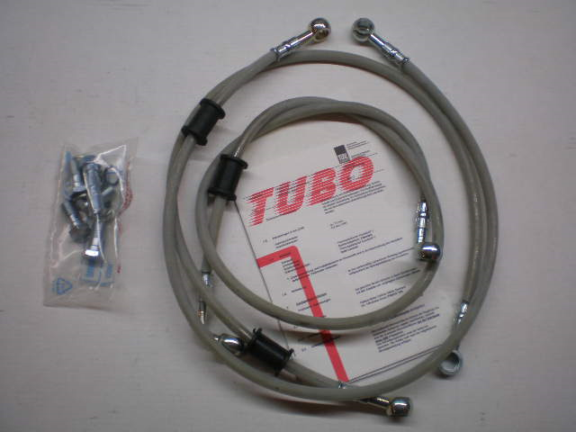 Ducati Performance bromsslangar till Ducati SuperSport 900, 1995 till 1997. Du måste själv kontrollera att dom passar till din årsmodell. Fren Tubo rostfria plast klädda slangar, banjobultar och packningar kommer med. Tidigare reservdels nummer: 16147. (Dom kanske kan passa andra modeller men det får du ta reda på) .