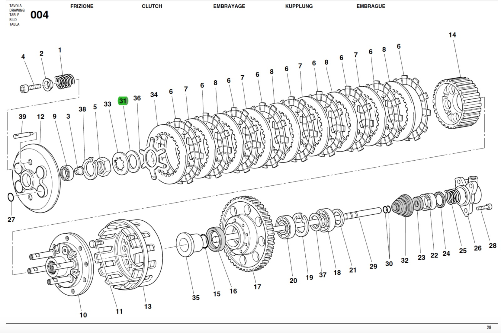 Ducati Corse centrerings bricka till slirkoppling 25mm hål . Bricka till Spindel fjäder. 71310961B. Sitter original på tex. 748RS, 916 R, 996 RS, 998RS, 999RS & Desmosedici RR. Passar flera Superbikes med Ducati Corse slipperclutch. Nr 31 på bild 3. Kontakta oss gärna före du lägger ordern och kolla om den passar din modell.