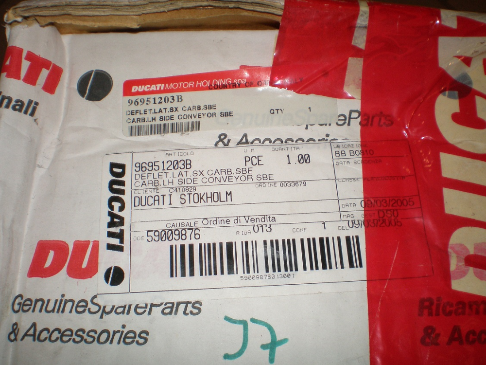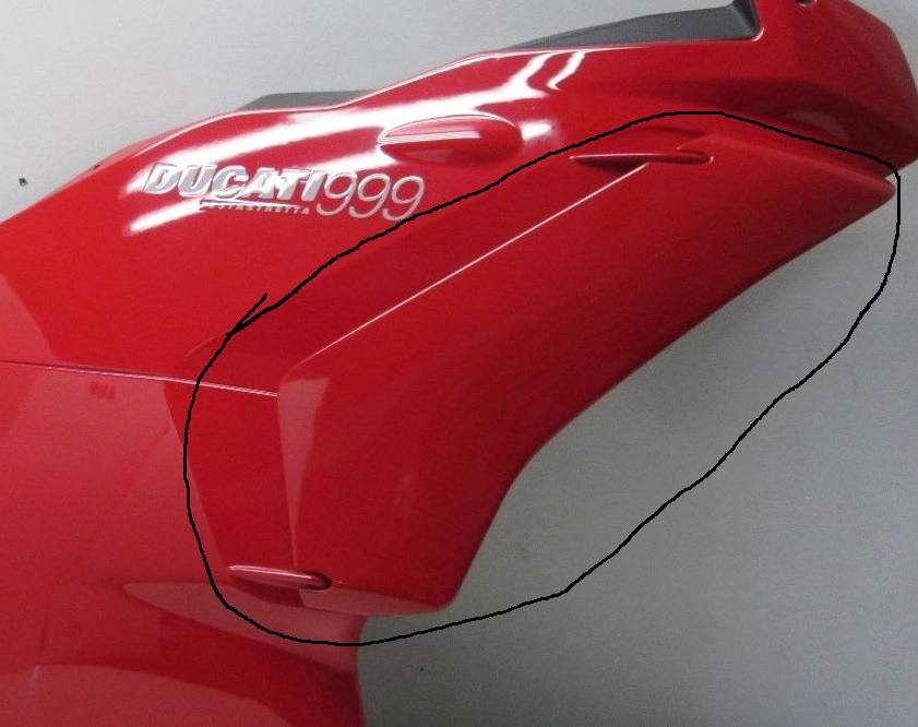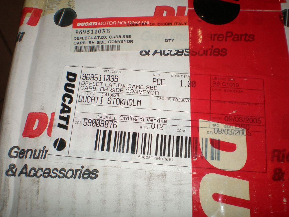 1 par Nya Ducati Performance, höger och vänster luftavledare / vingar i kolfiber till sidokåporna. Som den inringade på bilden men i kolfiber. Passar 999 och 749. Osäker på årsmodellerna. 96951103B, 96951203B