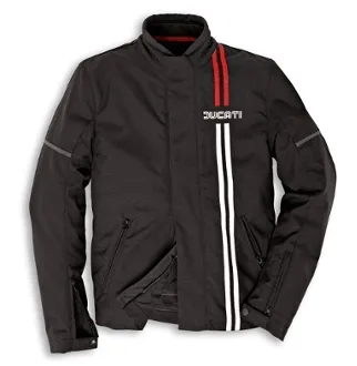 Stilren motorcykeljacka ur Ducatis retrokollektion 80´s collection. Vind- och vattenavstötande med CE-godkända skydd i axel och armbåge. Uttagbart foder vilken gör jackan perfekt både för kyliga vårkvällar och varma sommardagar.