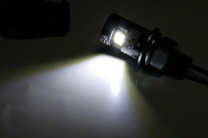 LED BOLT liten belysning till nummerskylten till MC med snygg design och starkt lyse. Kapslad LED-diod med bra lyse till nummerplåt. Varmvitt ljus ca 3000 kelvin. Rostfri och kraftig gänga inklusive mutter och bricka. Färdigmonterade kontakter med rundstift hane . E-godkänd nummerskyltsbelysning. Perfekt tillbehör om du har ont om plats vid nummerskylten. M8-gänga. Priset avser EN LED-bult för belysning av nummerplåt. Mått på armaturen/ljushuvudet: Diameter på armaturen: 12mm Längd på armaturen: 12,5mm Totallängd inkl. gänga: 32mm