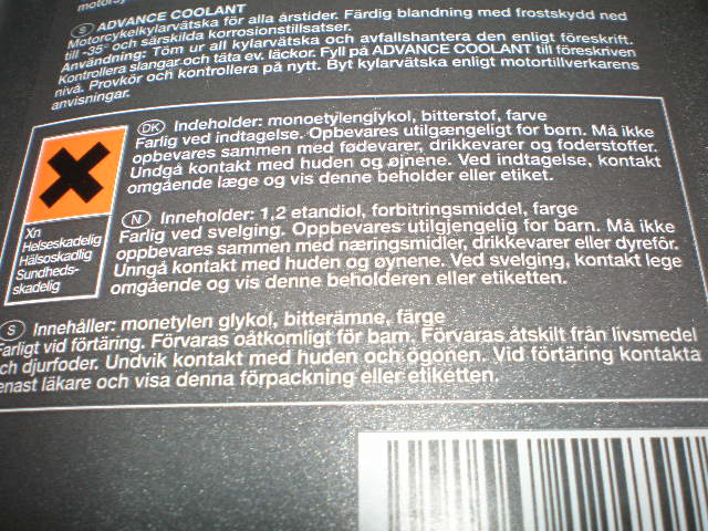 Kylarvätska för motorcykel, innehåller frostskydd, färdig att använda. 1000 ml. Avhämtning/skickas endast med företagspaket.