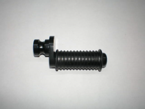 Pinnen som foten vilar på är klädd i gummi. Excentriskt fäste. Diameter på infästningen: 15mm 47mm utstick (lång). CNC fräst och eloxerad. Svart aluminium med svart gummi.